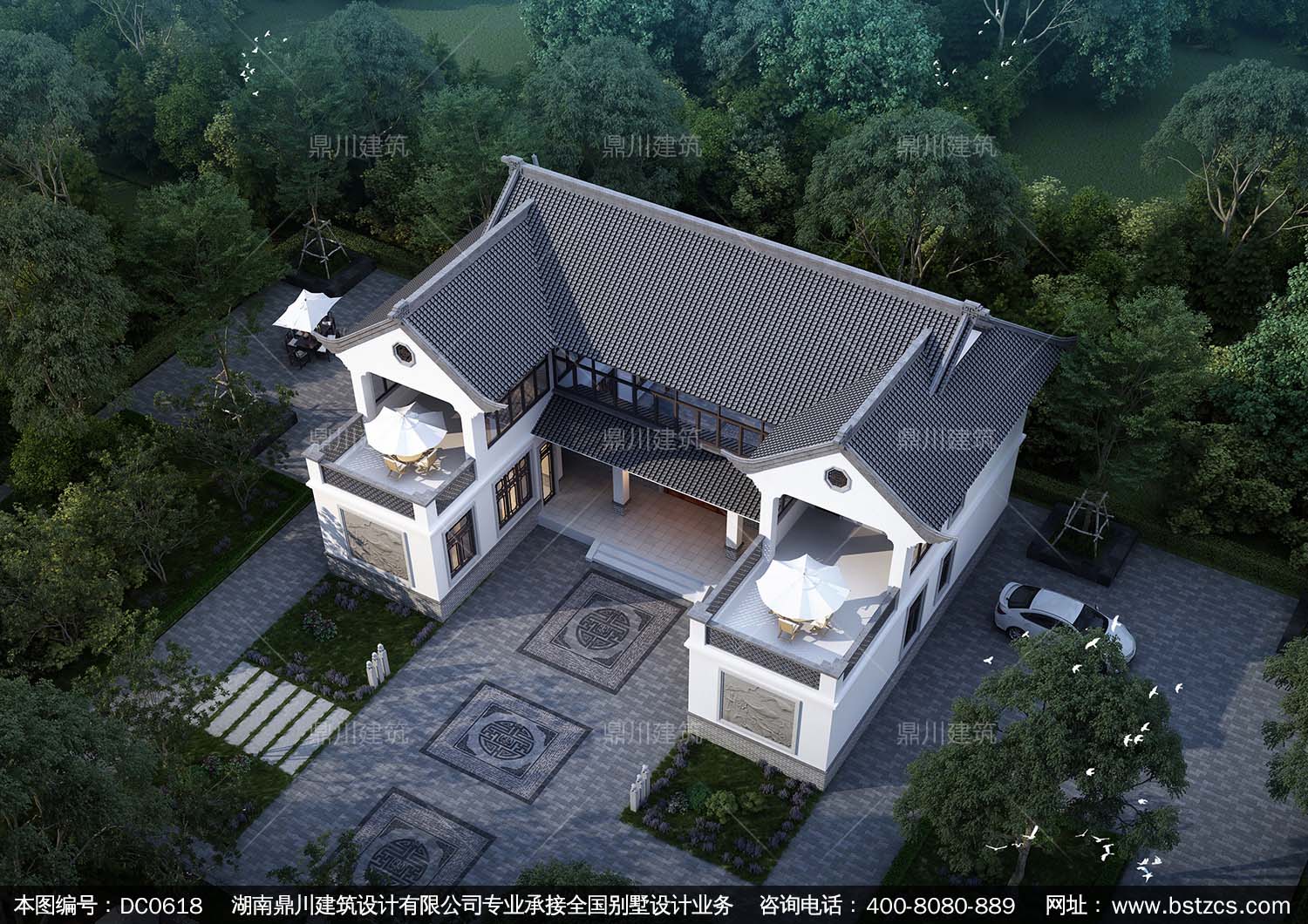新中式二層帶露臺自建房別墅圖紙_農村兩層別墅設計,鼎川建筑