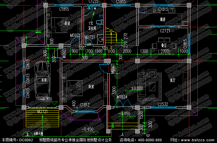 | 一 層: | 客廳、2臥室、廚房、餐廳、衛(wèi)生間、車庫 | |||
