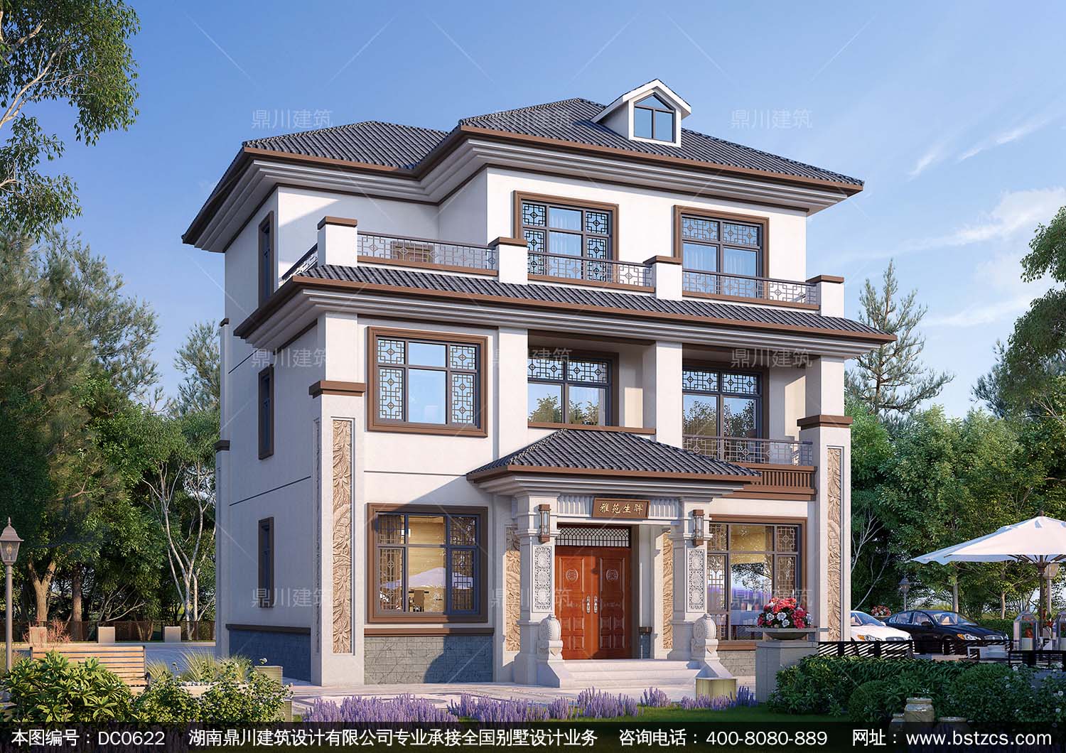 新中式三層帶露臺別墅設計圖紙及效果圖_農村三層別墅設計,鼎川