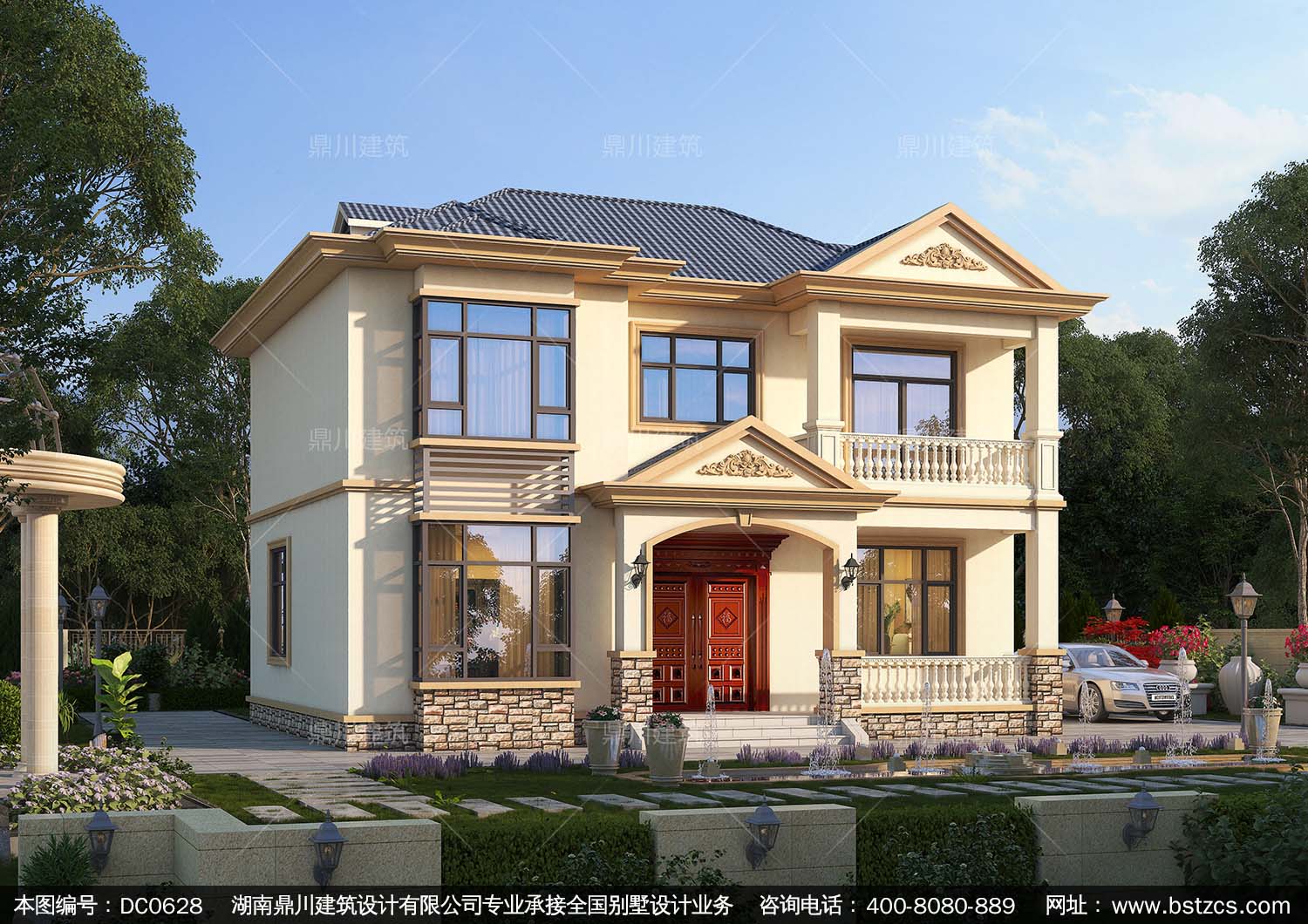歐式二層帶陽臺小別墅設計效果圖及施工圖_農村兩層自建房別墅圖紙,鼎川建筑