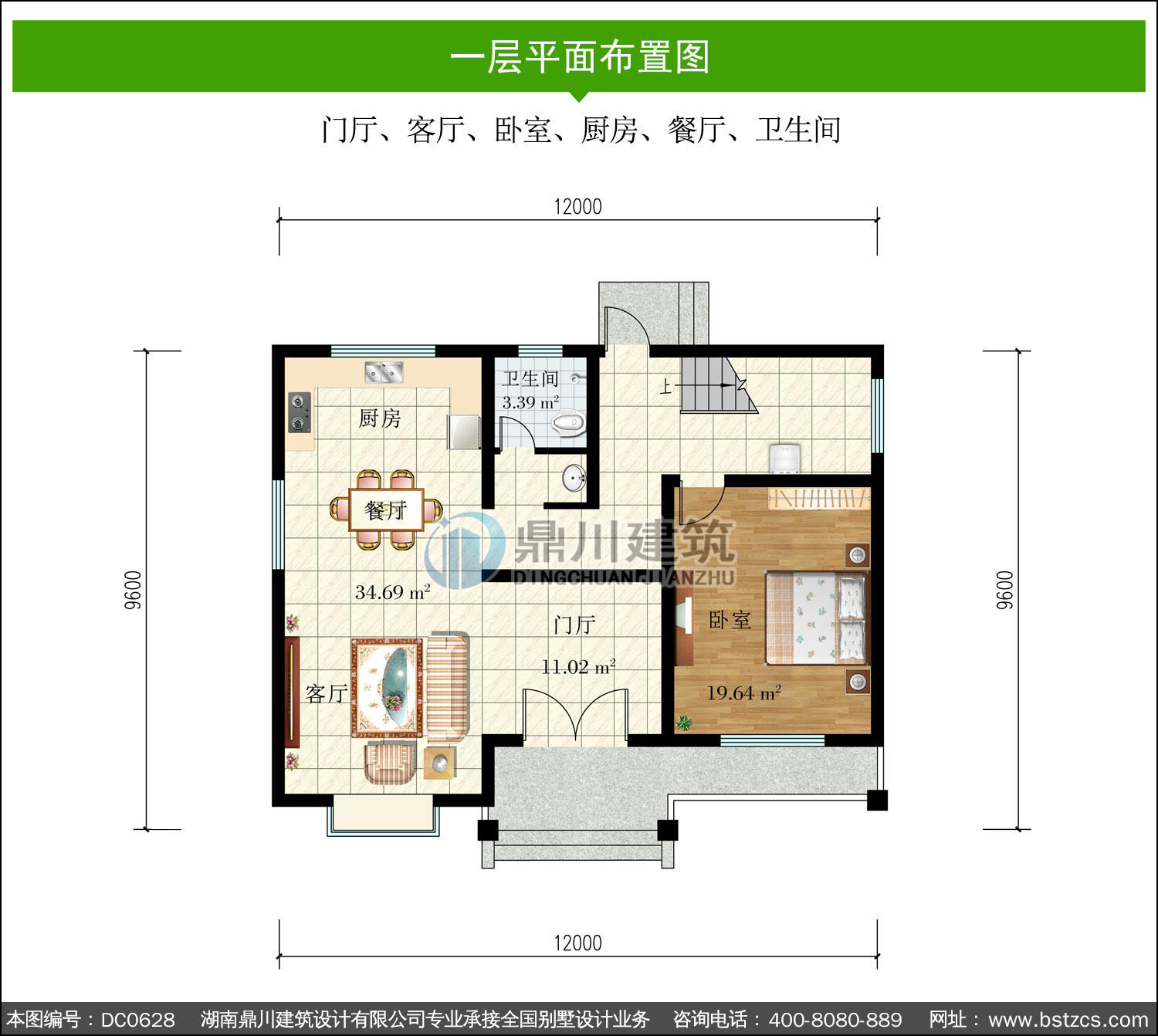 | 一 層: | 門廳、客廳、臥室、廚房、餐廳、衛生間 | |||