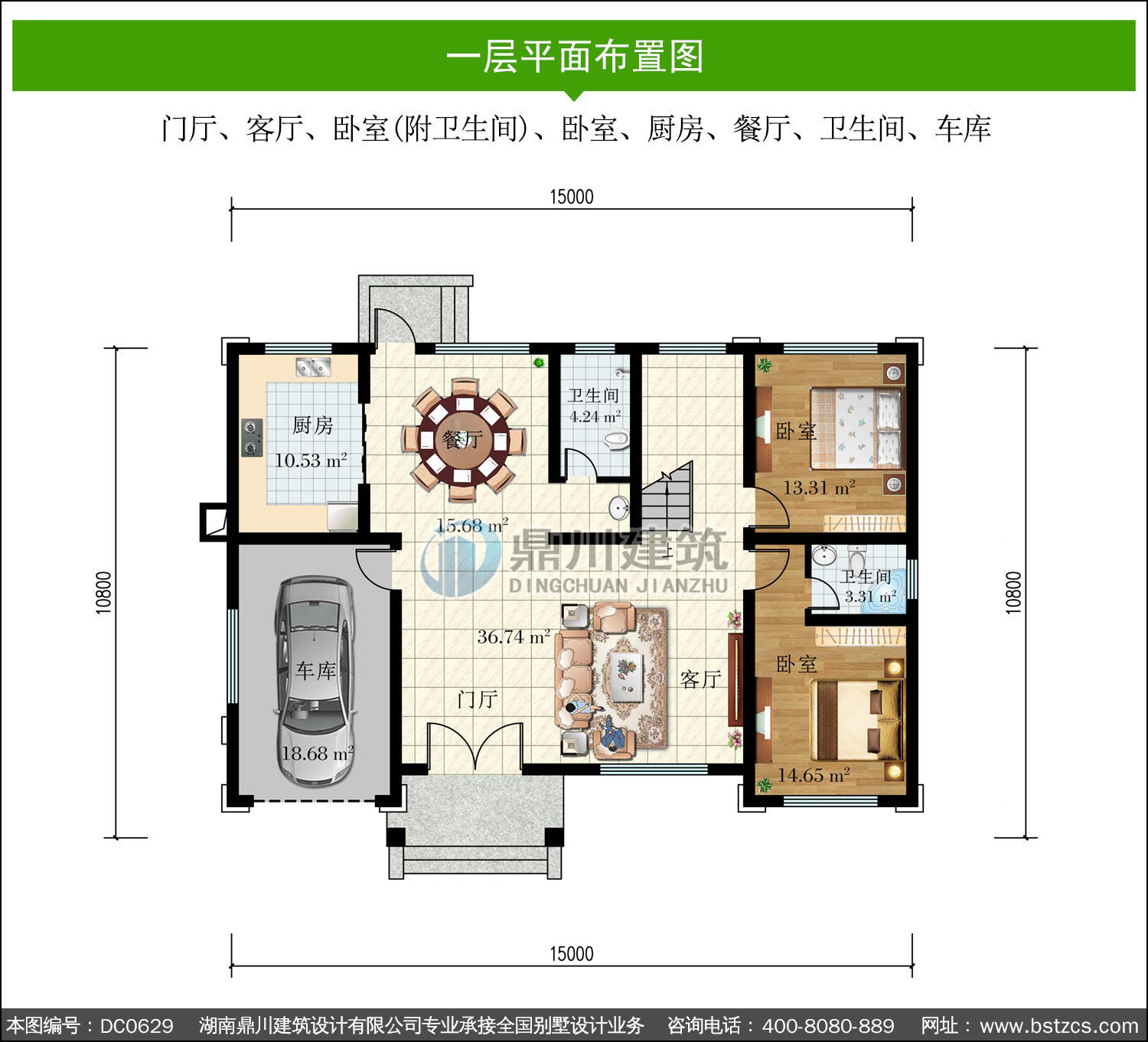 | 一 層: | 門廳、客廳、臥室(附衛生間)、臥室、廚房、餐廳、衛生間、車庫 | |||