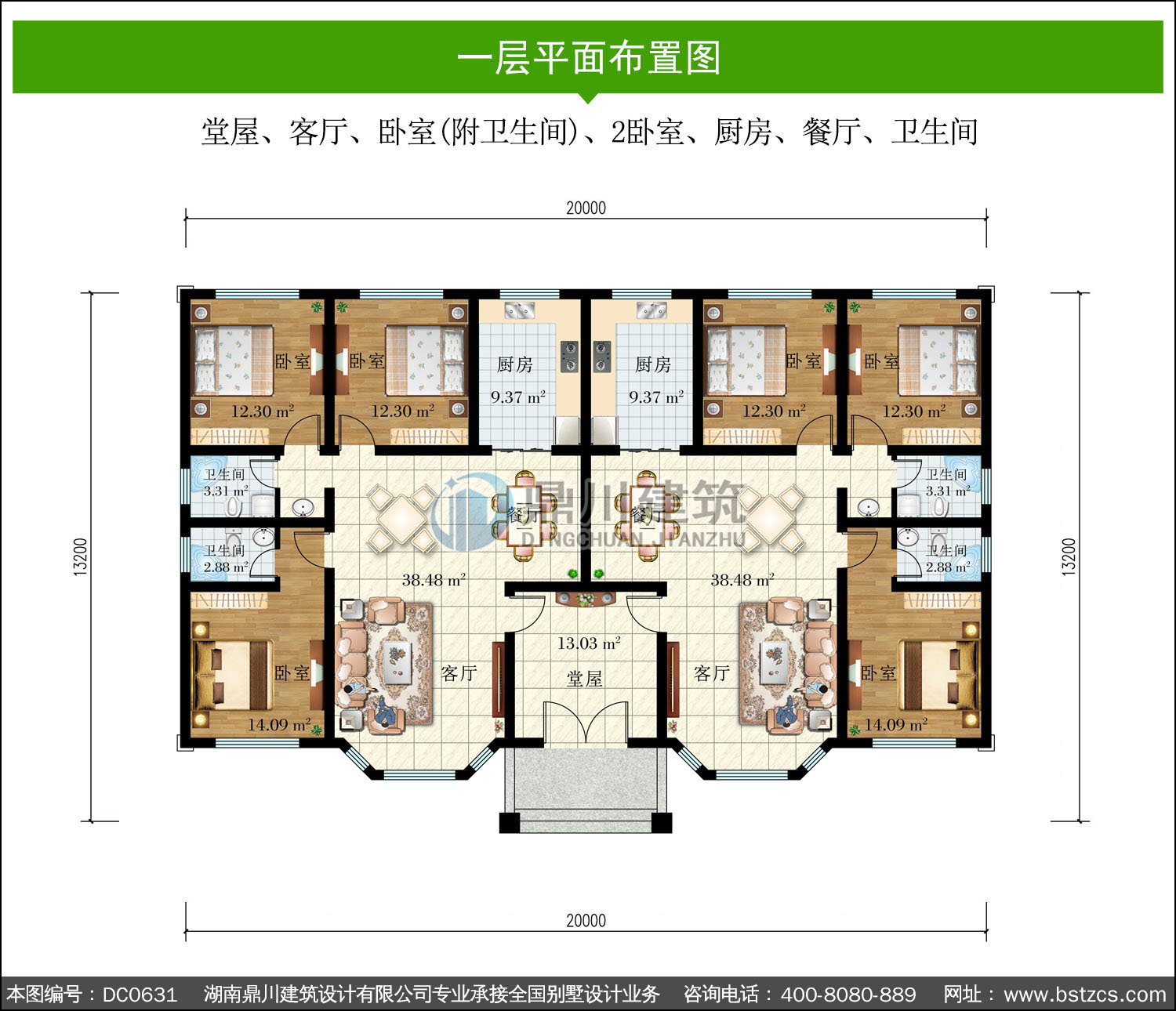 農村雙拼一層自建別墅設計圖紙_農村一層平房設計圖,鼎川建筑