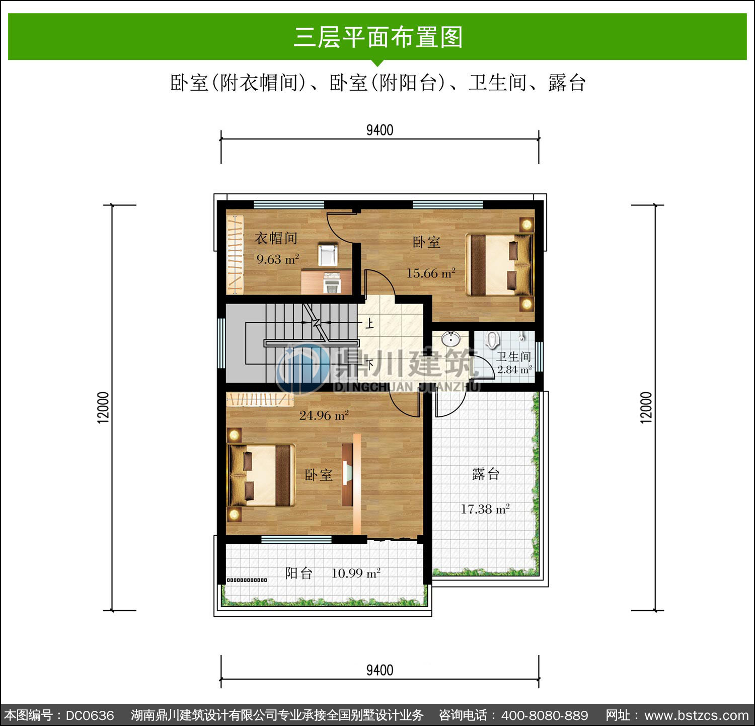 | 三 層: | 臥室(附衣帽間)、臥室(附陽臺)、衛生間、露臺 | |||