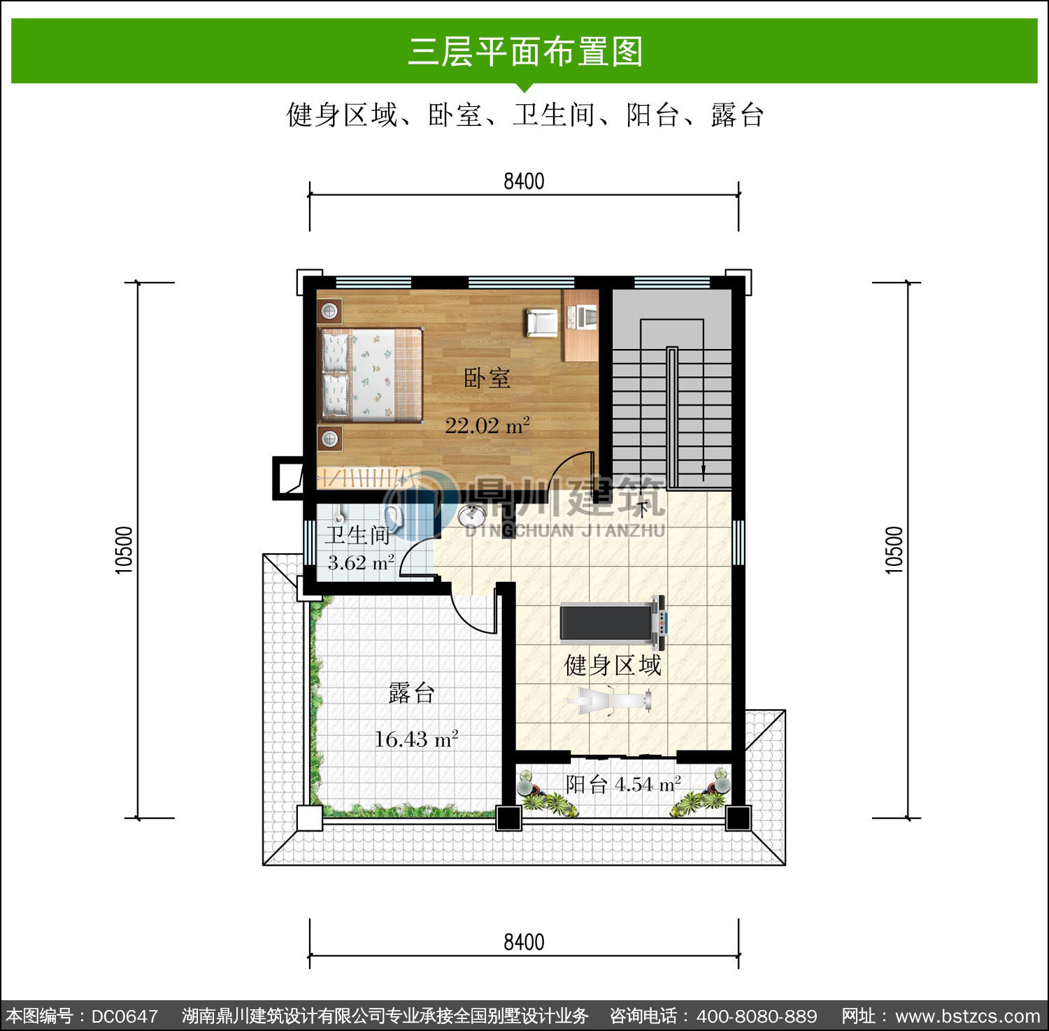 | 三 層: | 健身區域、臥室、衛生間、陽臺、露臺 | |||