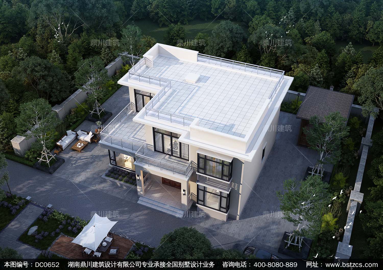 二層現代風格平頂自建房屋設計圖紙及效果圖_農村兩層帶露臺小別墅設計圖紙,鼎川建筑