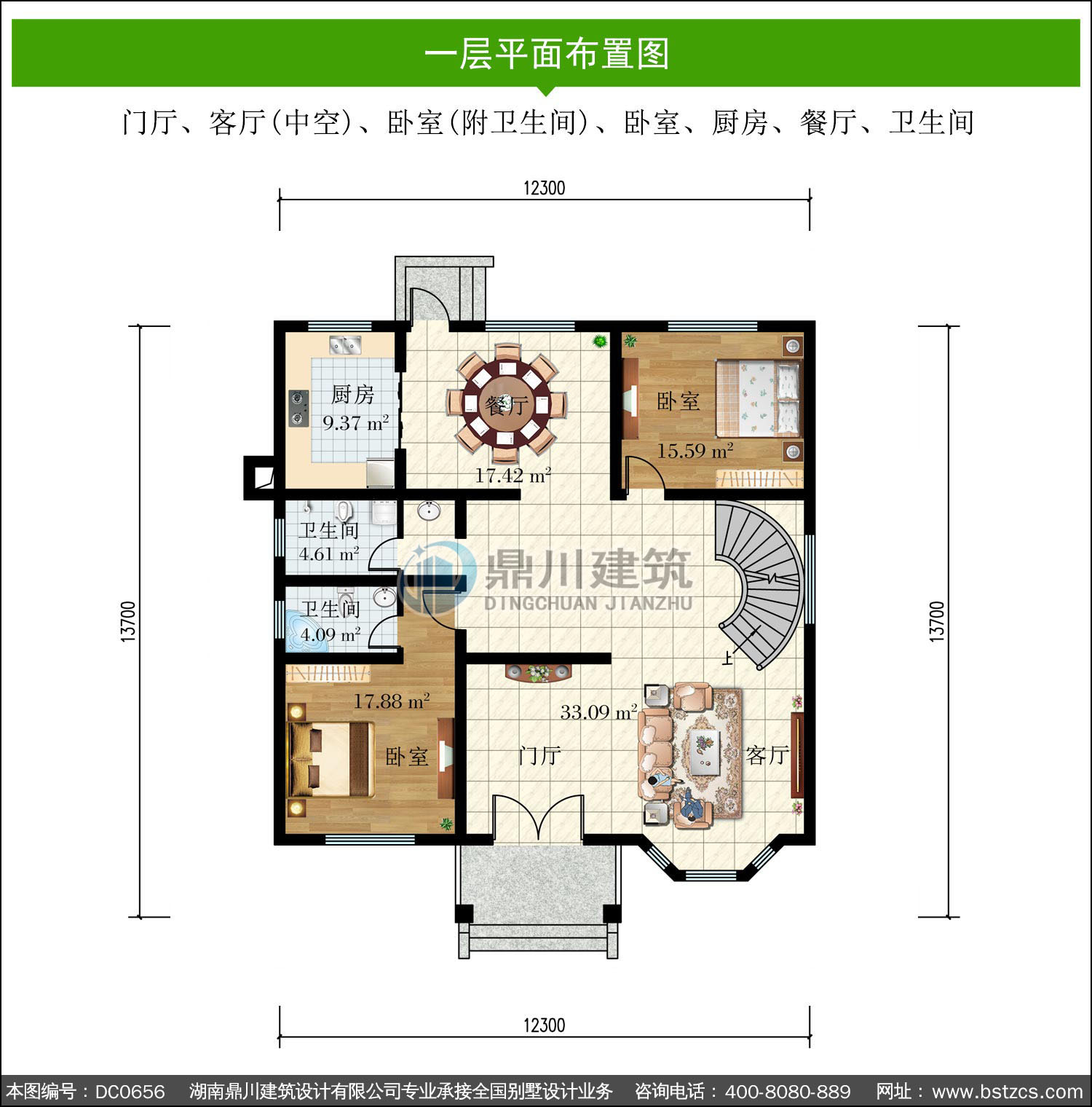 歐式三層帶旋轉樓梯別墅設計施工圖紙_農村三層復式自建房別墅設計圖,鼎川建筑