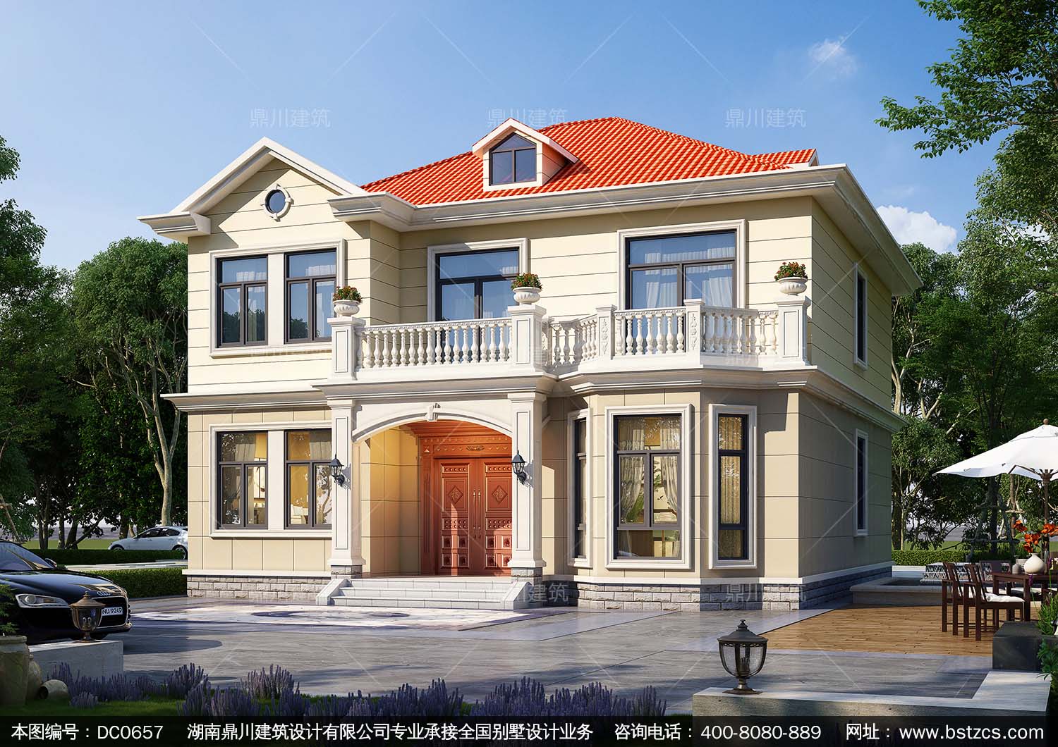 歐式二層帶露臺簡約農村小別墅全套施工圖紙及效果圖_鄉村兩層自建房設計圖紙,鼎川建筑
