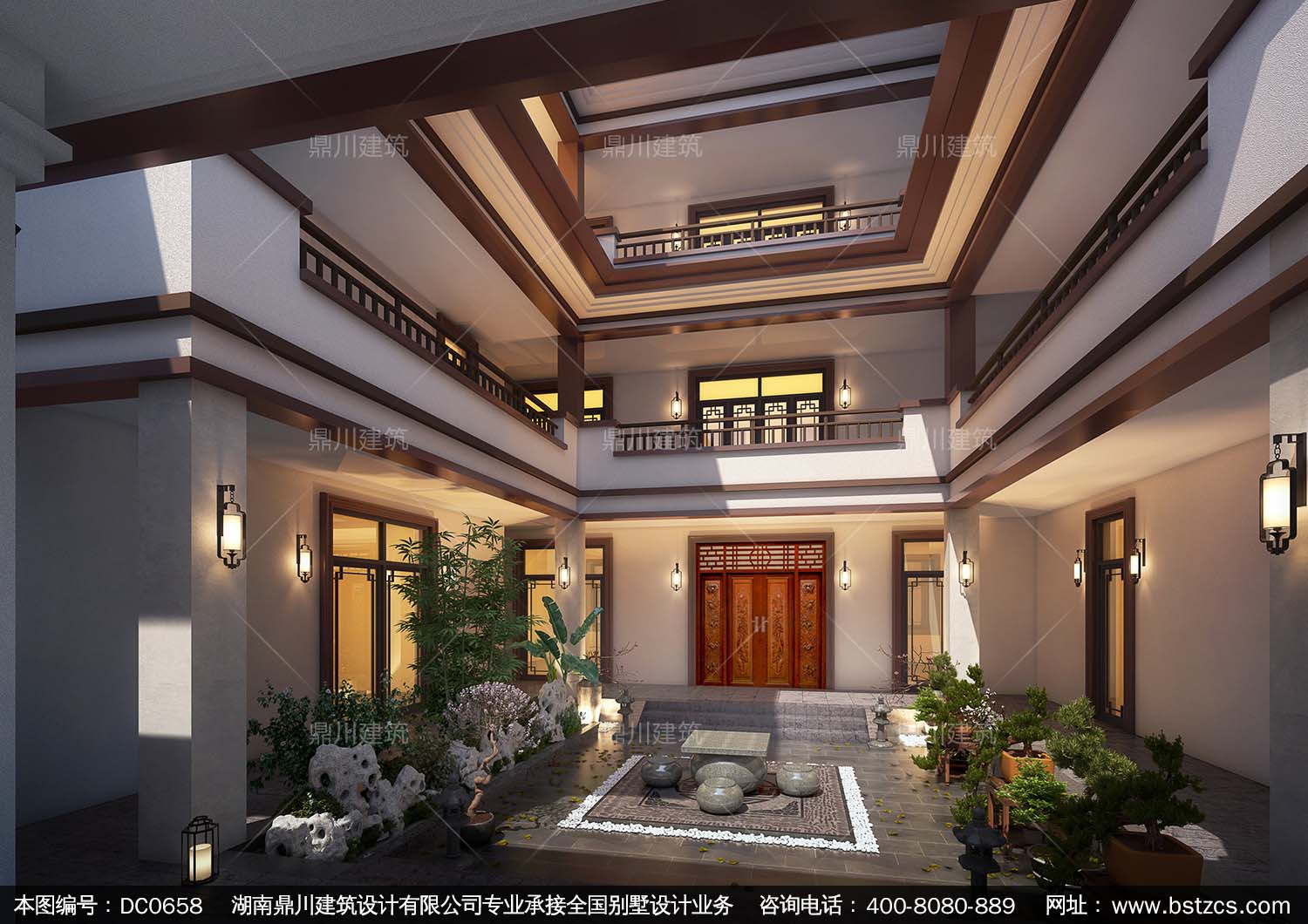 二層中式小四合院圖紙施工圖及效果圖_中式三合院四合院設計圖紙