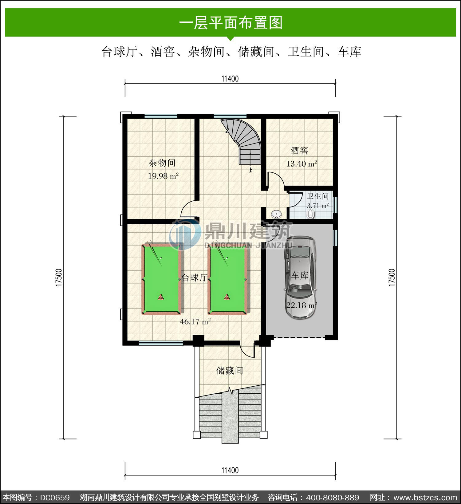 | 一 層: | 臺球廳、酒窖、雜物間、儲藏間、衛生間、車庫 | |||