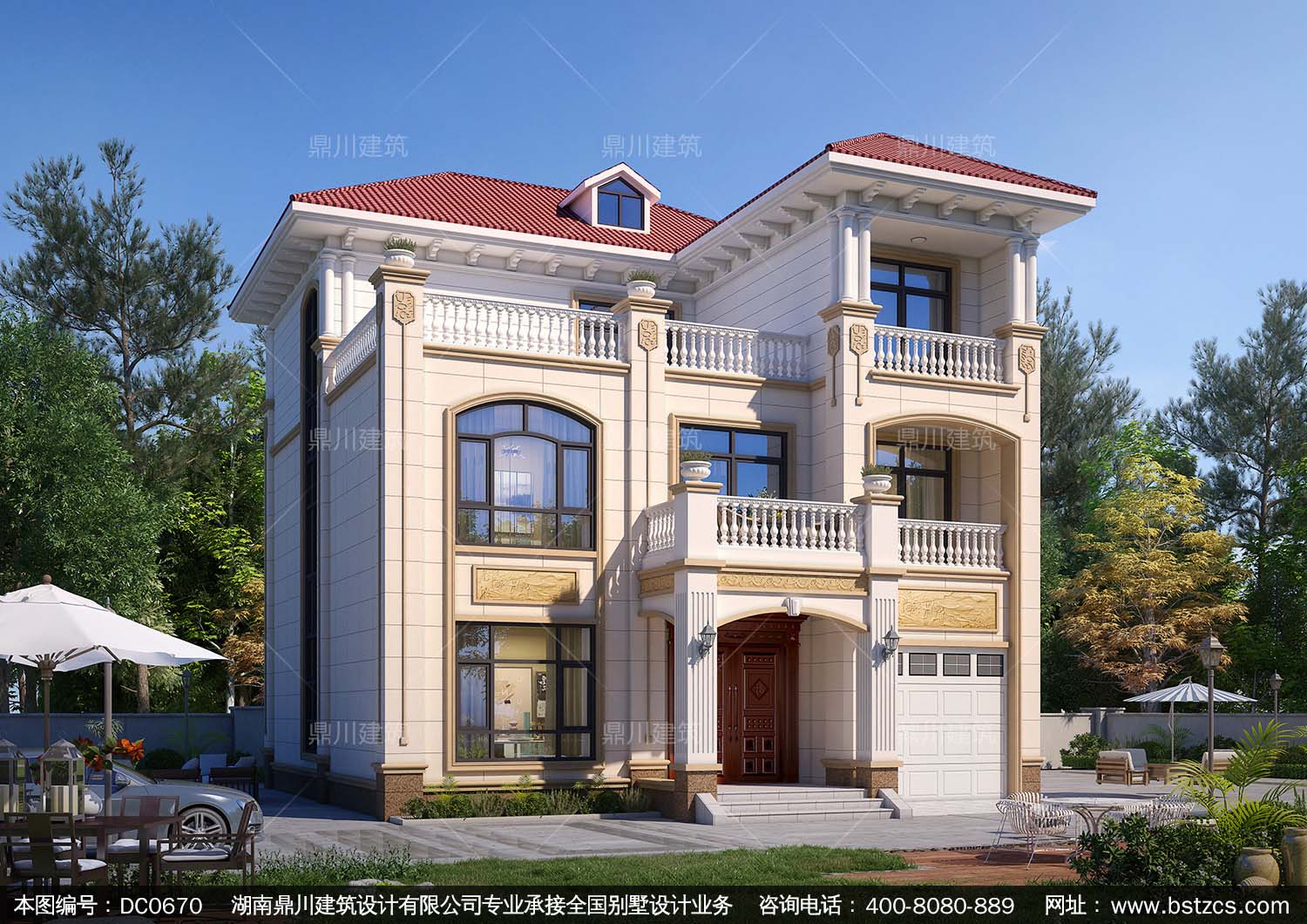 歐式三層帶車庫別墅設計效果圖及施工圖-農村三層自建房屋設計圖-鼎川建筑