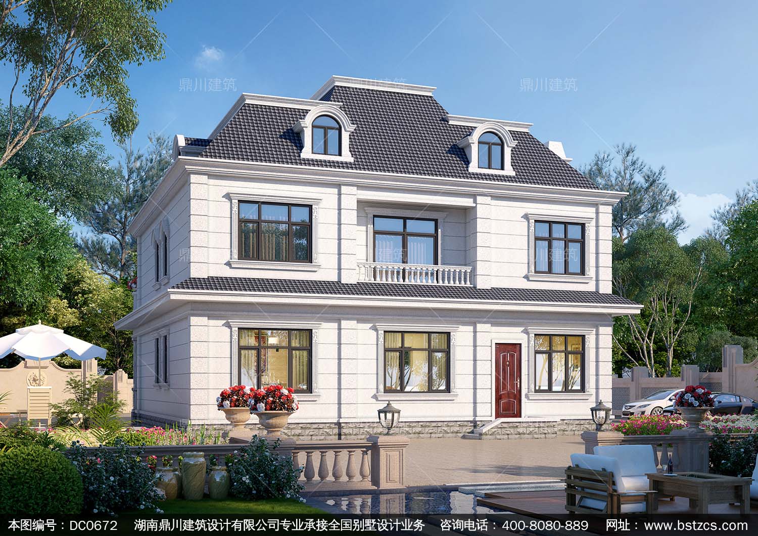 漂亮的豪華二層法式別墅設計效果圖及施工圖_新農村兩層自建別墅設計,鼎川建筑