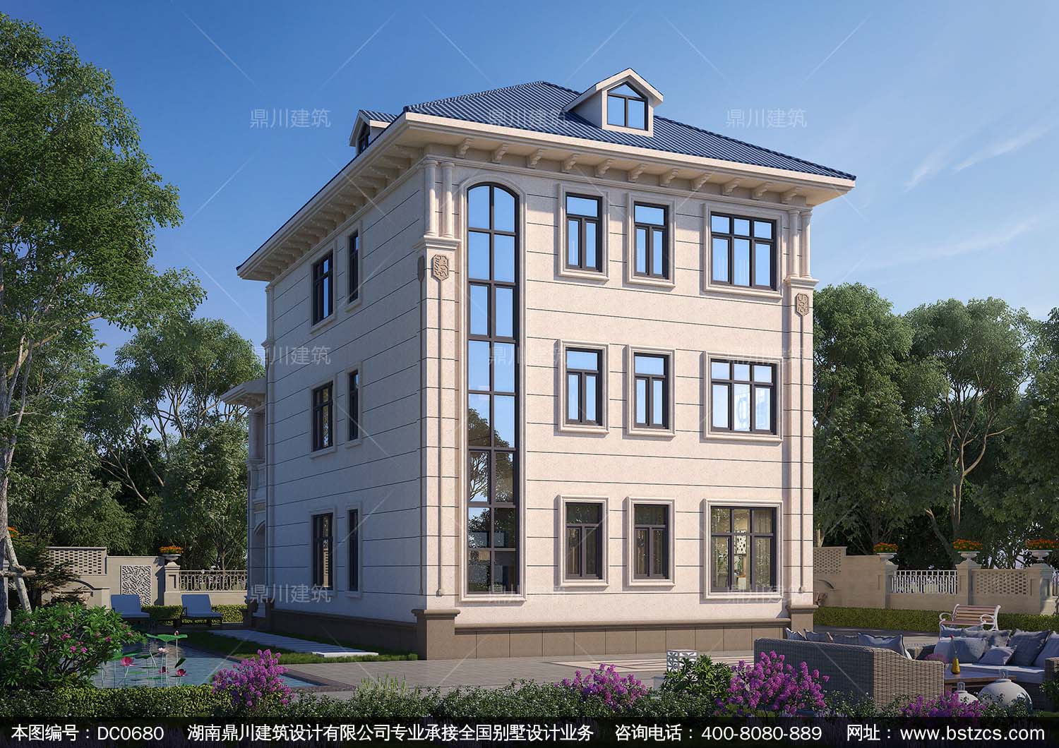 歐式三層帶露臺小別墅設計圖紙及效果圖_農村三層自建房屋設計,鼎川建筑