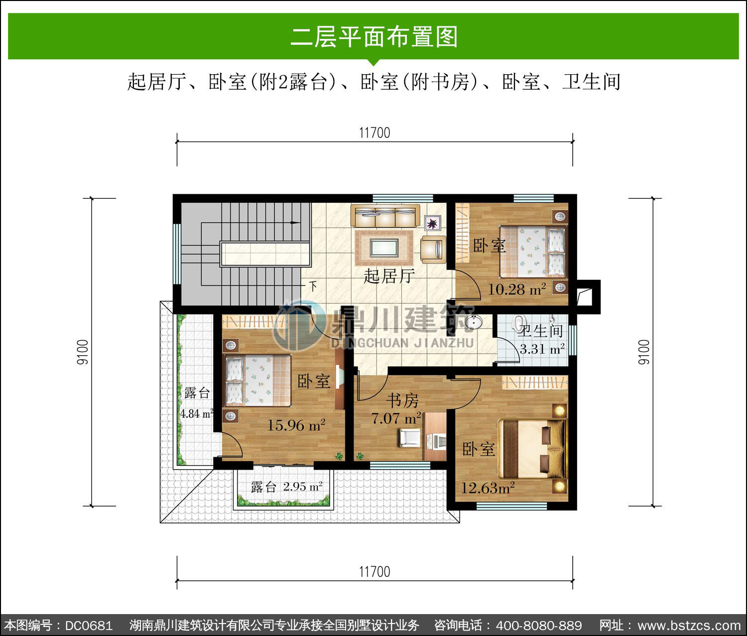 | 二 層: | 起居廳、臥室(附2露臺(tái))、臥室(附書房)、臥室、衛(wèi)生間 | |||