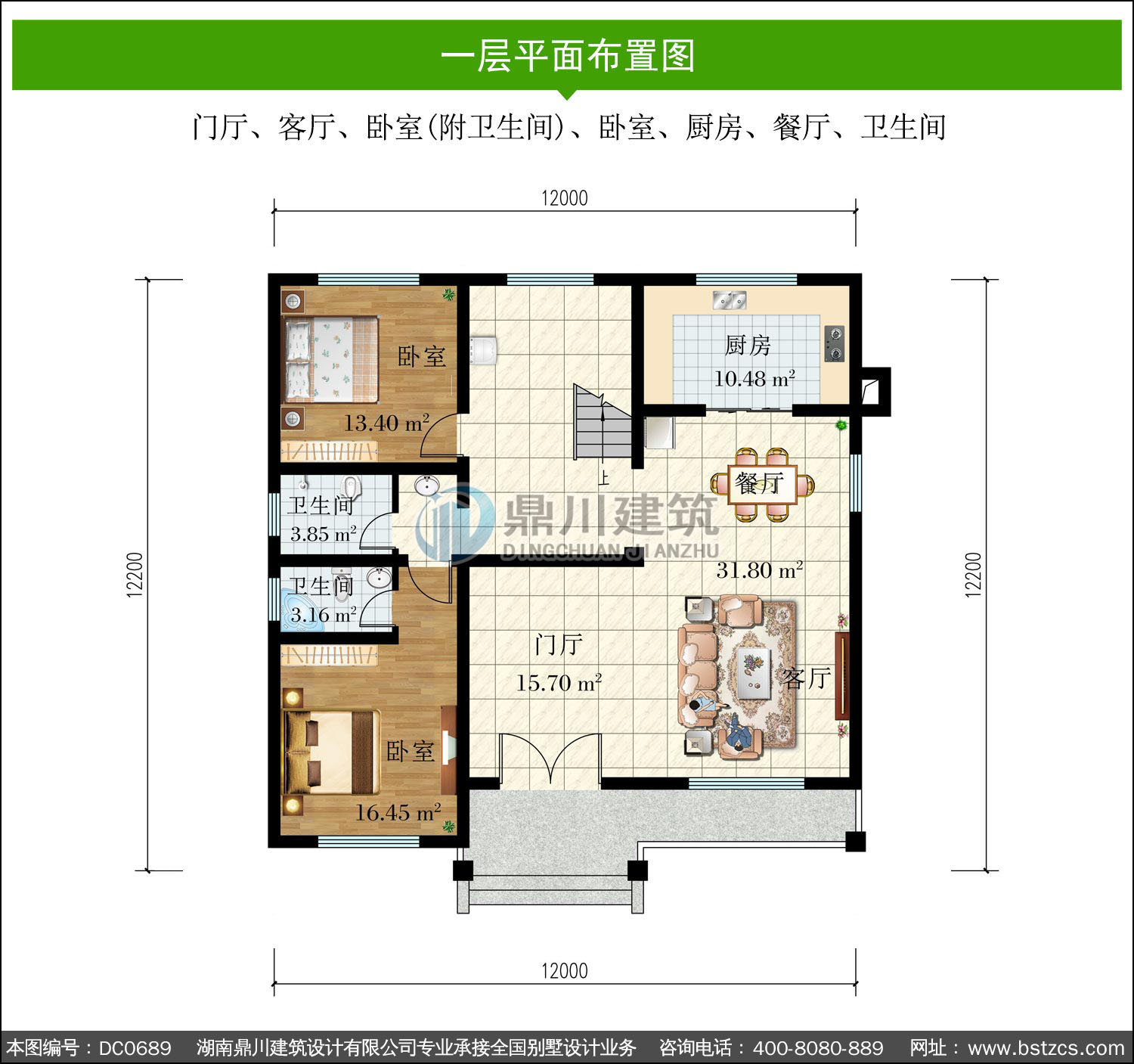| 一 層: | 門廳、客廳、臥室(附衛生間)、臥室、廚房、餐廳、衛生間 | |||