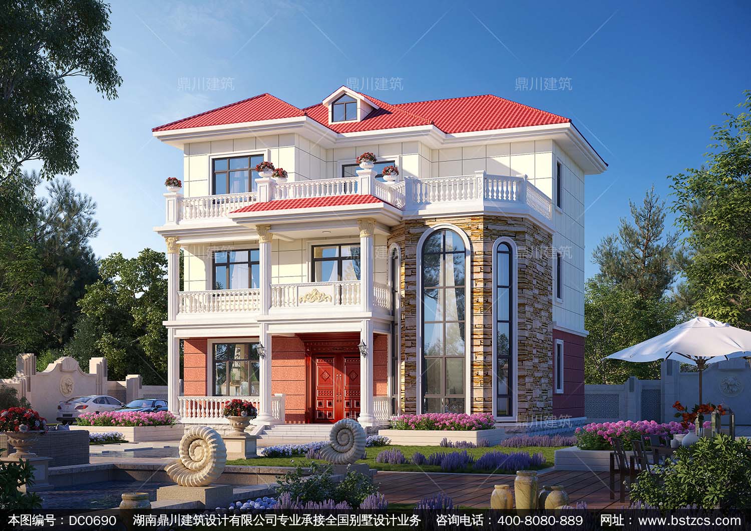 新農(nóng)村復(fù)式三層帶露臺別墅全套施工圖紙及外觀效果圖_鄉(xiāng)村三層自建房屋設(shè)計(jì),鼎川別墅圖紙