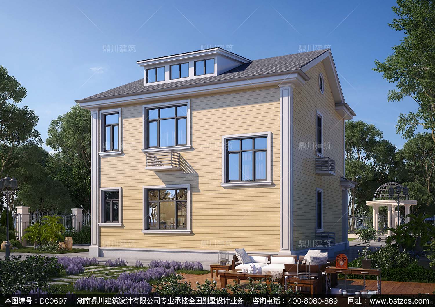 歐式二層帶露臺小別墅設計圖紙_農村實用自建房屋設計圖,鼎川建