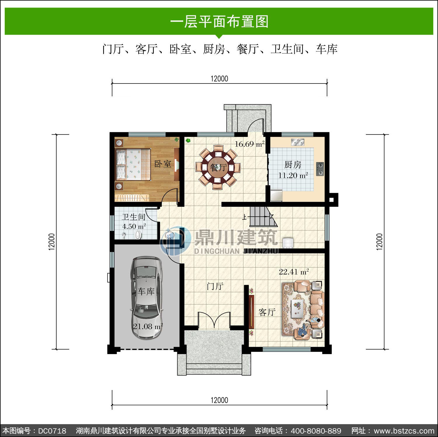 | 一 層: | 門廳、客廳、臥室、廚房、餐廳、衛生間、車庫 | |||