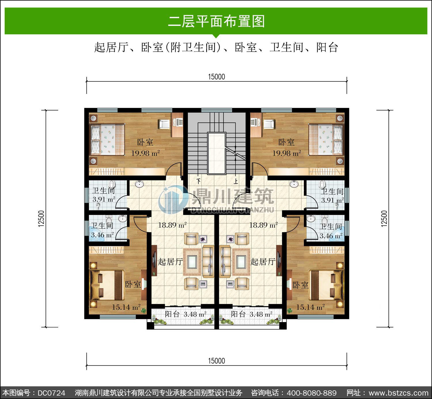三層共堂屋雙拼別墅設計圖紙_農(nóng)村雙拼別墅圖紙,鼎川建筑