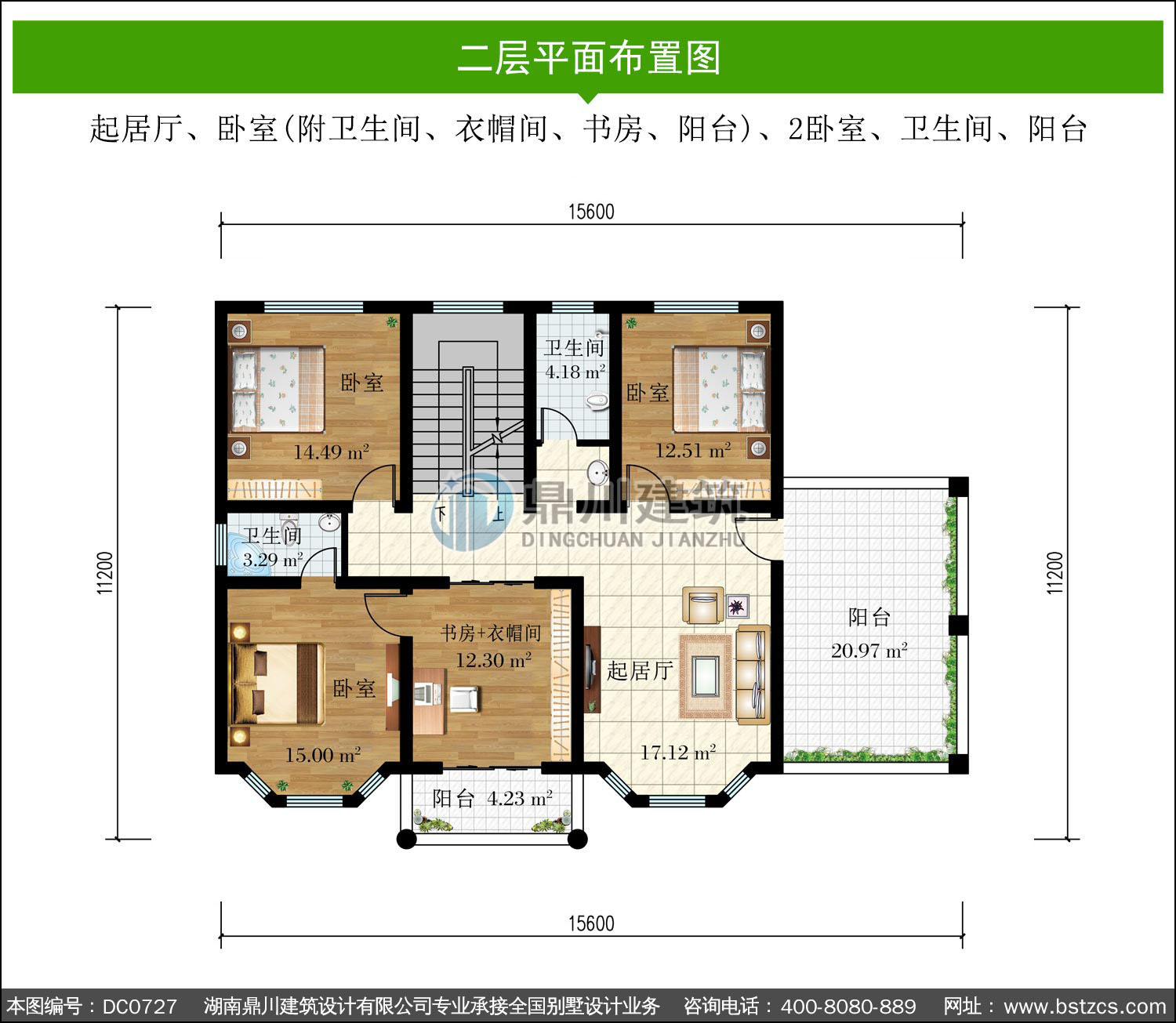 | 二 層: | 起居廳、臥室(附衛(wèi)生間、衣帽間、書房、陽臺)、2臥室、衛(wèi)生間、陽臺 | |||