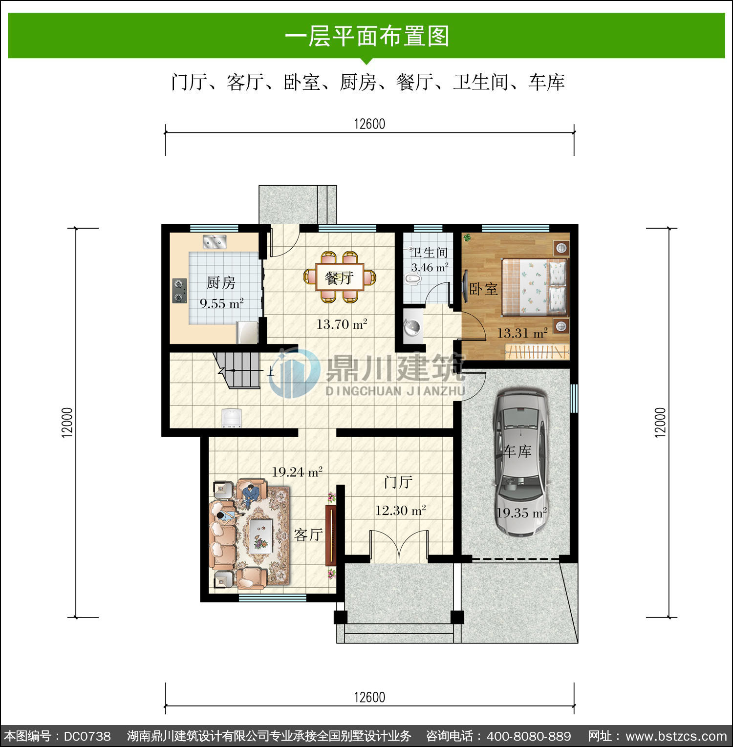 | 一 層: | 門廳、客廳、臥室、廚房、餐廳、衛生間、車庫 | |||