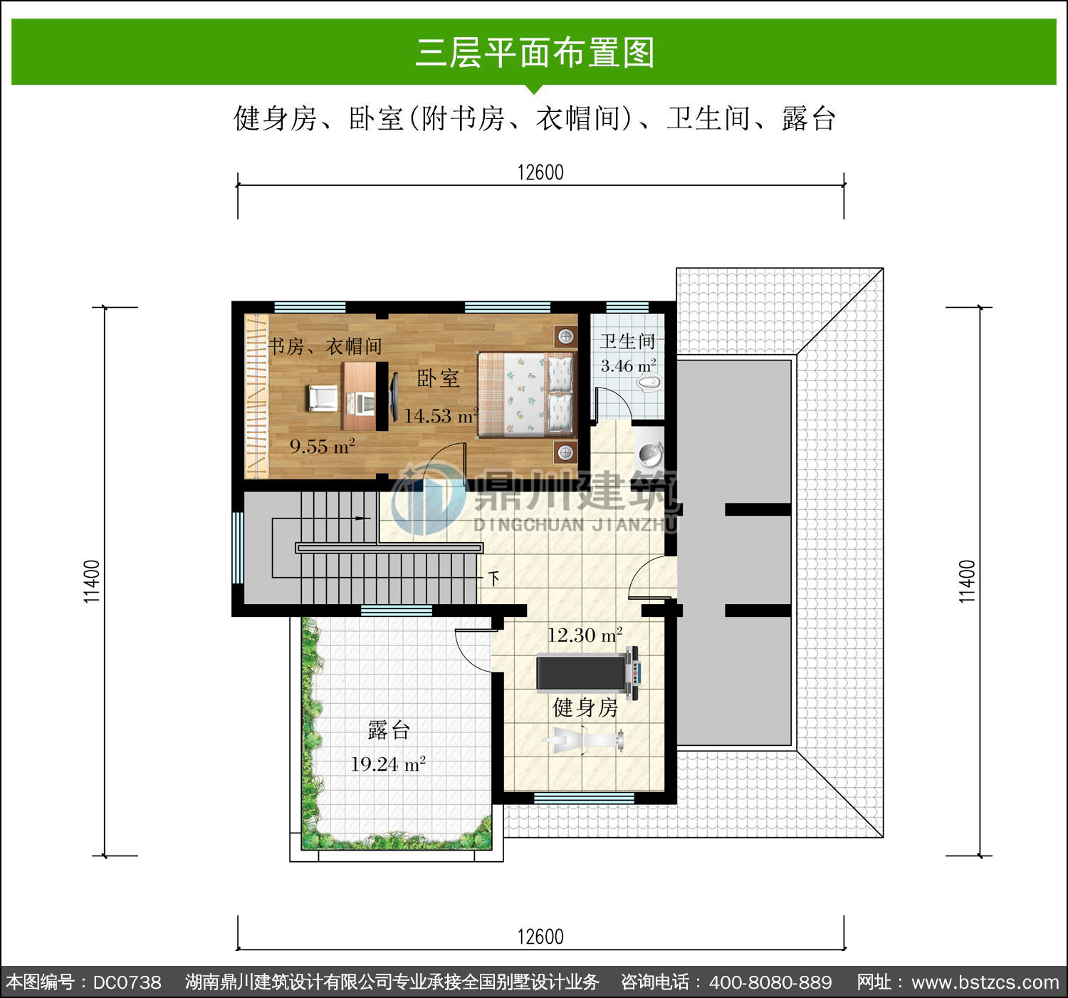 | 三 層: | 健身房、臥室(附書房、衣帽間)、衛生間、露臺 | |||