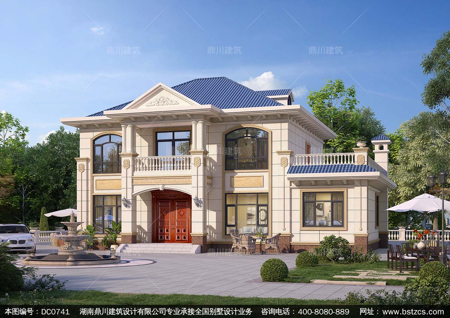 簡歐二層帶陽臺別墅效果圖及施工圖_農村自建房屋設計圖紙,鼎川