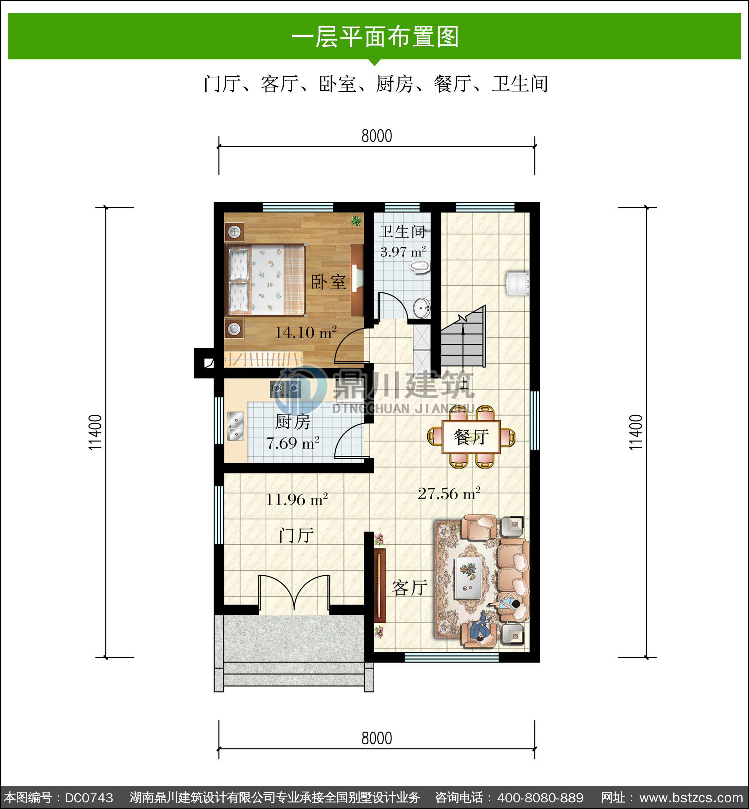| 一 層: | 門廳、客廳、臥室、廚房、餐廳、衛生間 | |||