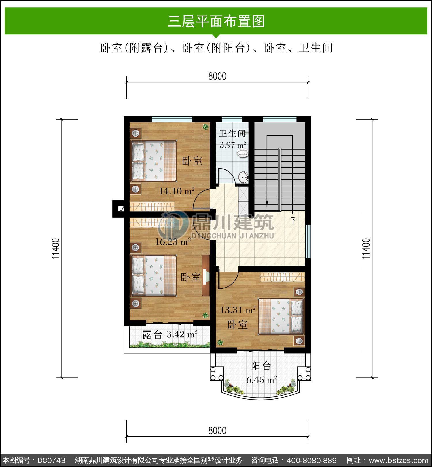 | 編號: DC0743 | 層數: 三層 | 結構形式: 磚混結構 | 主體造價: 28-32萬 |