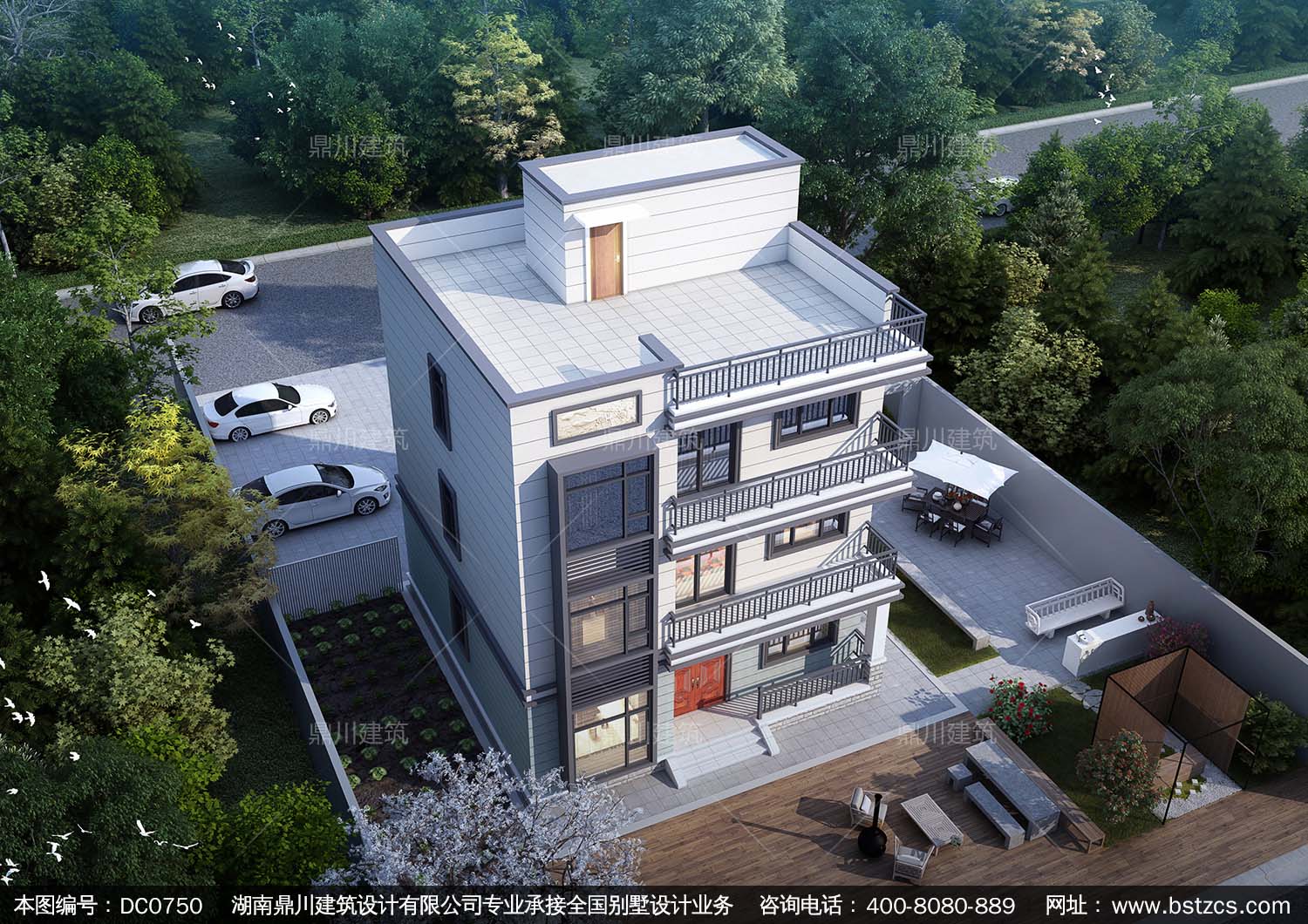 新中式三層帶露臺別墅圖紙效果圖_農村自建別墅設計,鼎川建筑