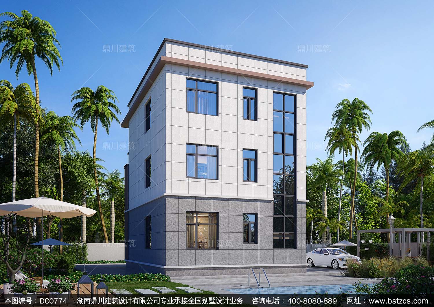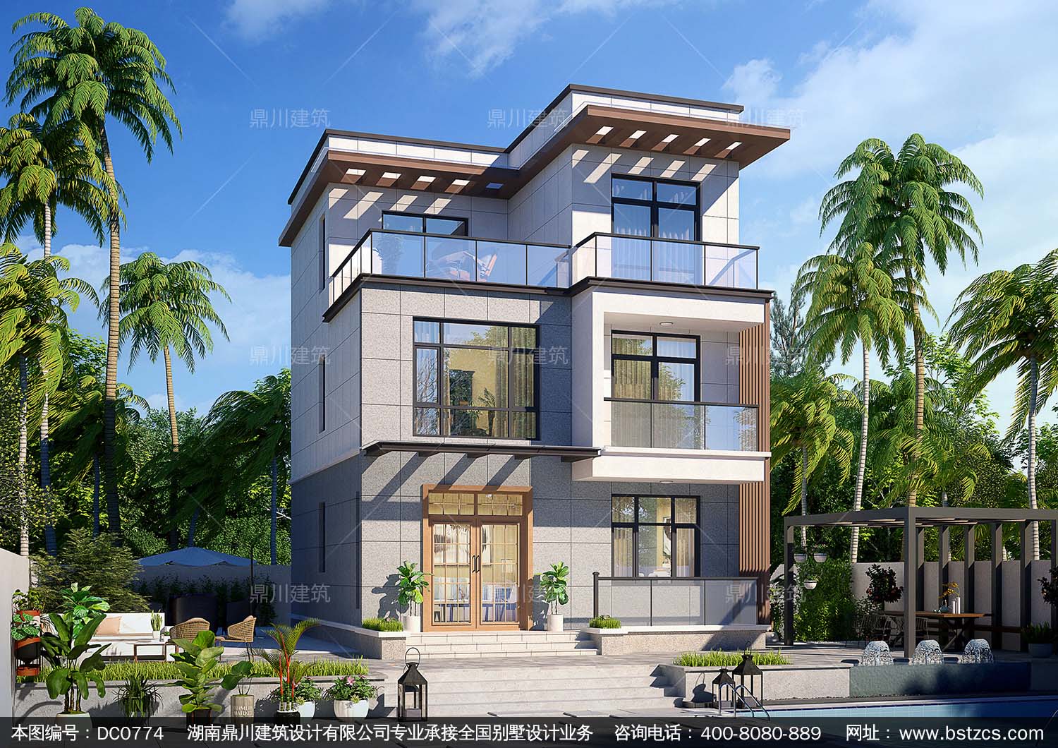 農村現代風格三層別墅設計圖紙_大氣三層自建別墅圖紙,鼎川建筑