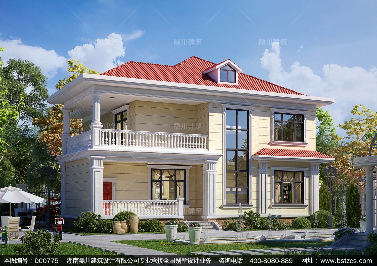 歐式二層帶陽臺別墅圖紙及效果圖_新農村自建房設計,鼎川建筑