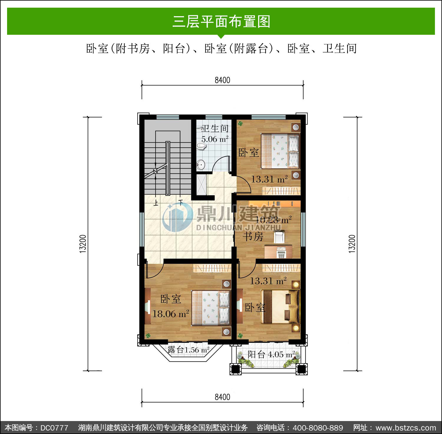 | 三 層: | 臥室(附書房、陽臺)、臥室(附露臺)、臥室、衛(wèi)生間 | |||