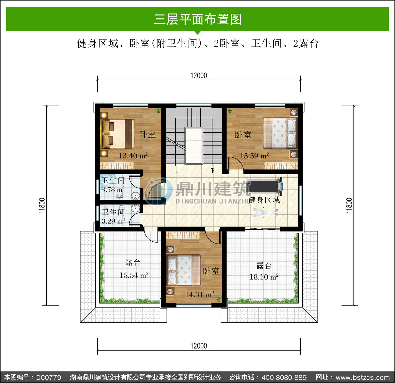 新農村三層帶露臺自建房別墅設計圖紙_農村三層別墅設計,鼎川建