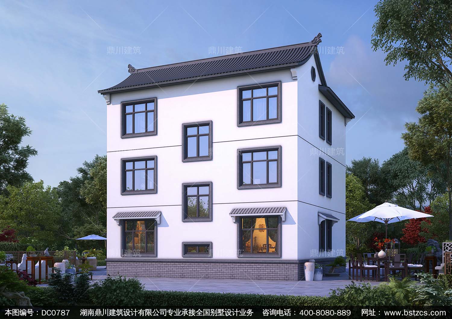三層中式風格別墅效果圖及施工圖_新農村別墅設計圖紙,鼎川建筑