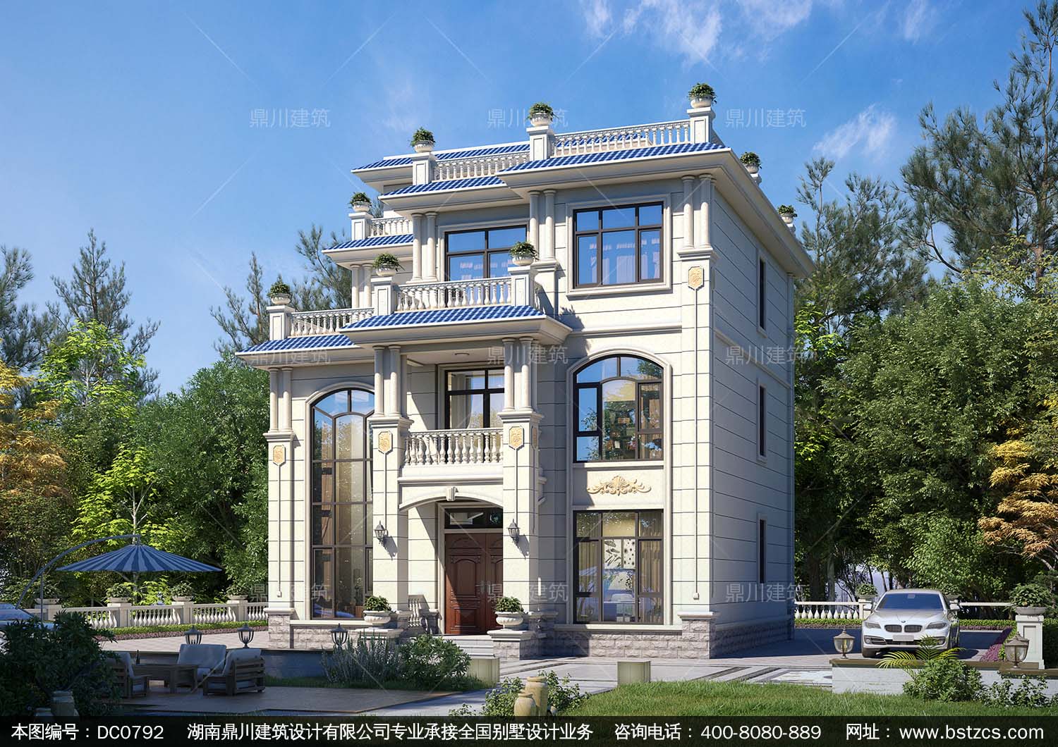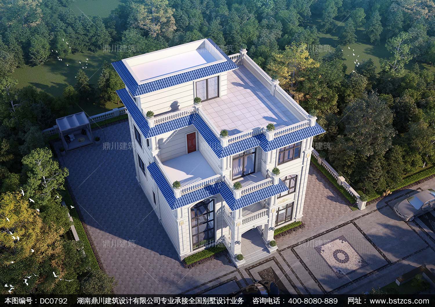 歐式三層帶露臺別墅施工圖紙及效果圖_新農村自建房設計,鼎川建