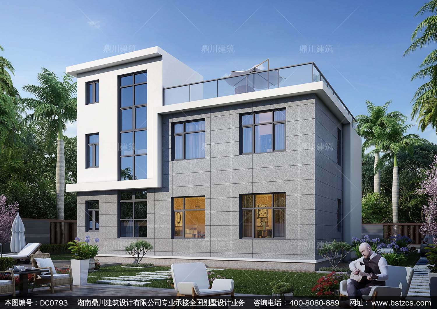 現代三層別墅設計施工圖及效果圖_農村三層平屋頂自建房圖紙,鼎