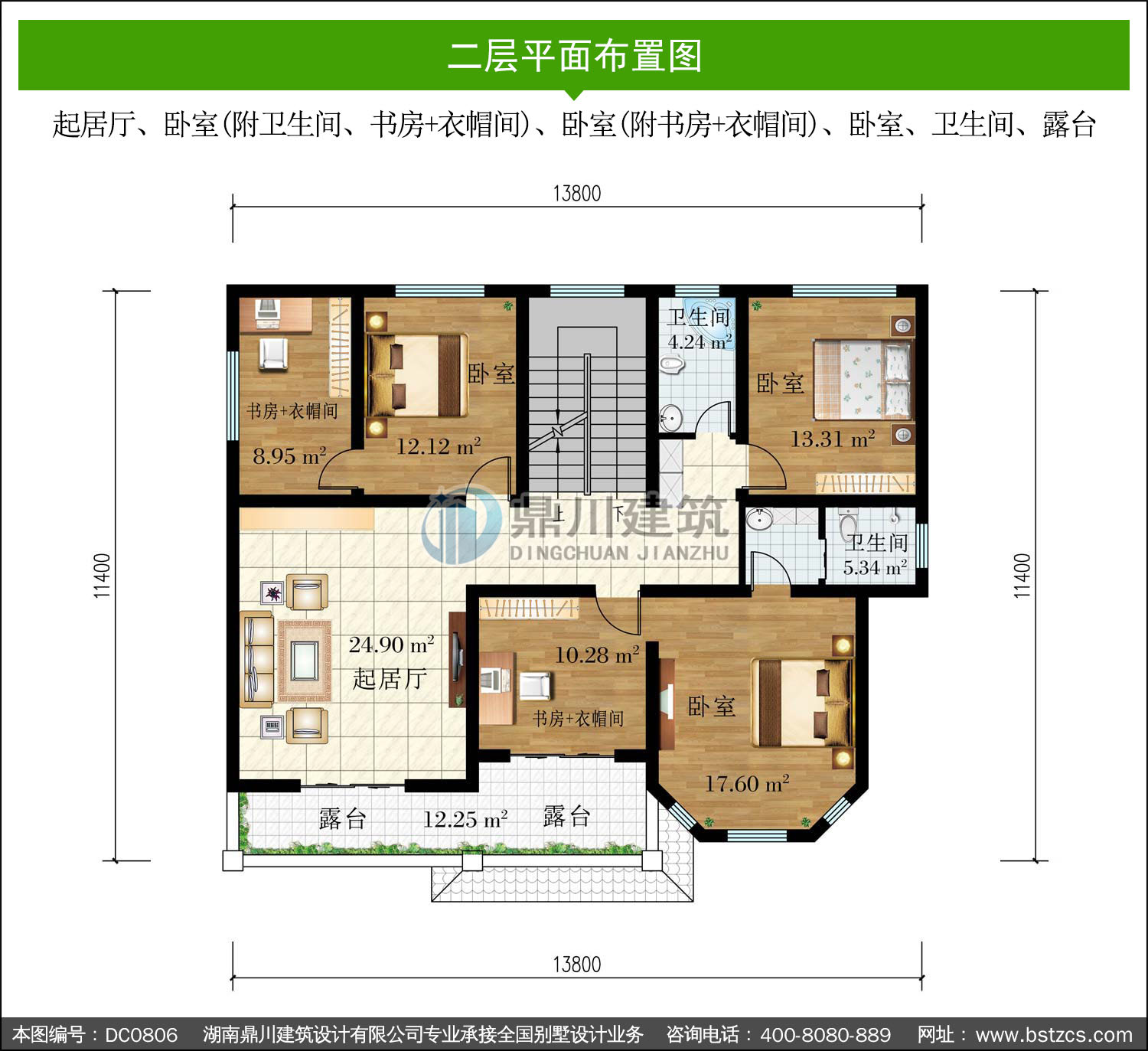 二層帶露臺(tái)別墅施工圖紙及效果圖_農(nóng)村自建房屋設(shè)計(jì),鼎川建筑