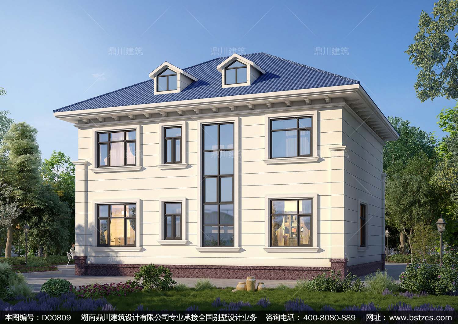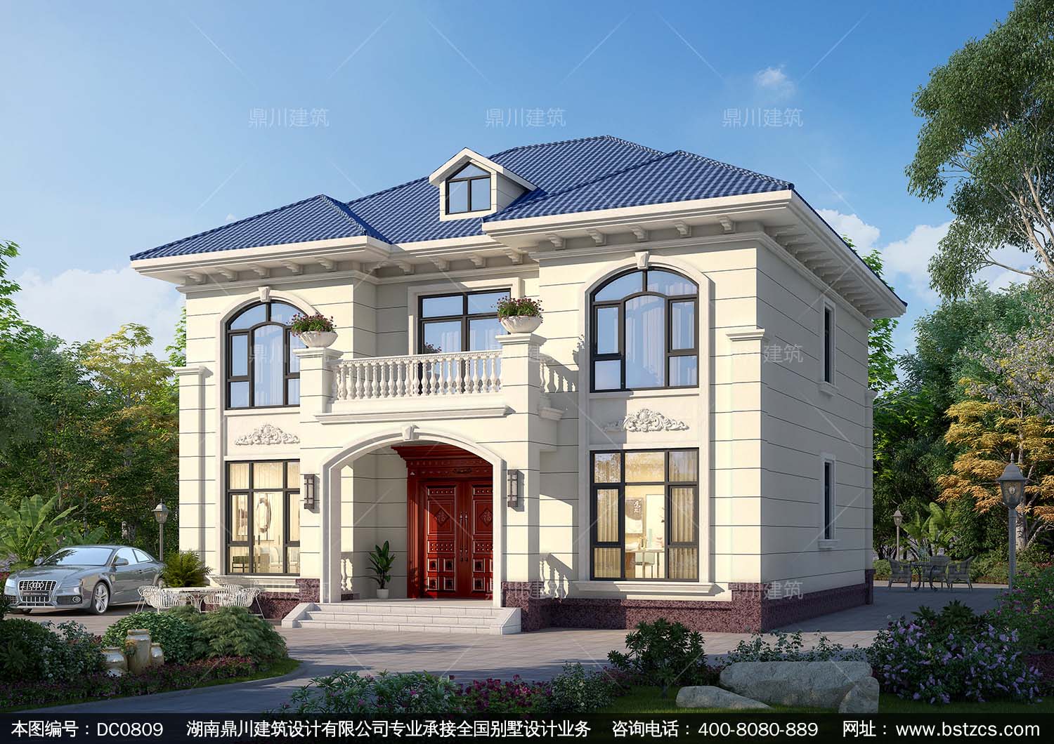 歐式二層帶陽臺別墅效果圖及施工圖紙_農村自建房設計,鼎川建筑