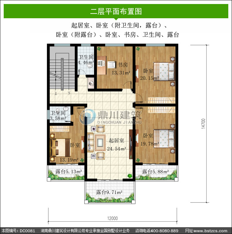 | 二 層: | 起居室、臥室(附衛(wèi)生間,露臺)、臥室(附露臺)、臥室、書房、衛(wèi)生間、露臺 | |||