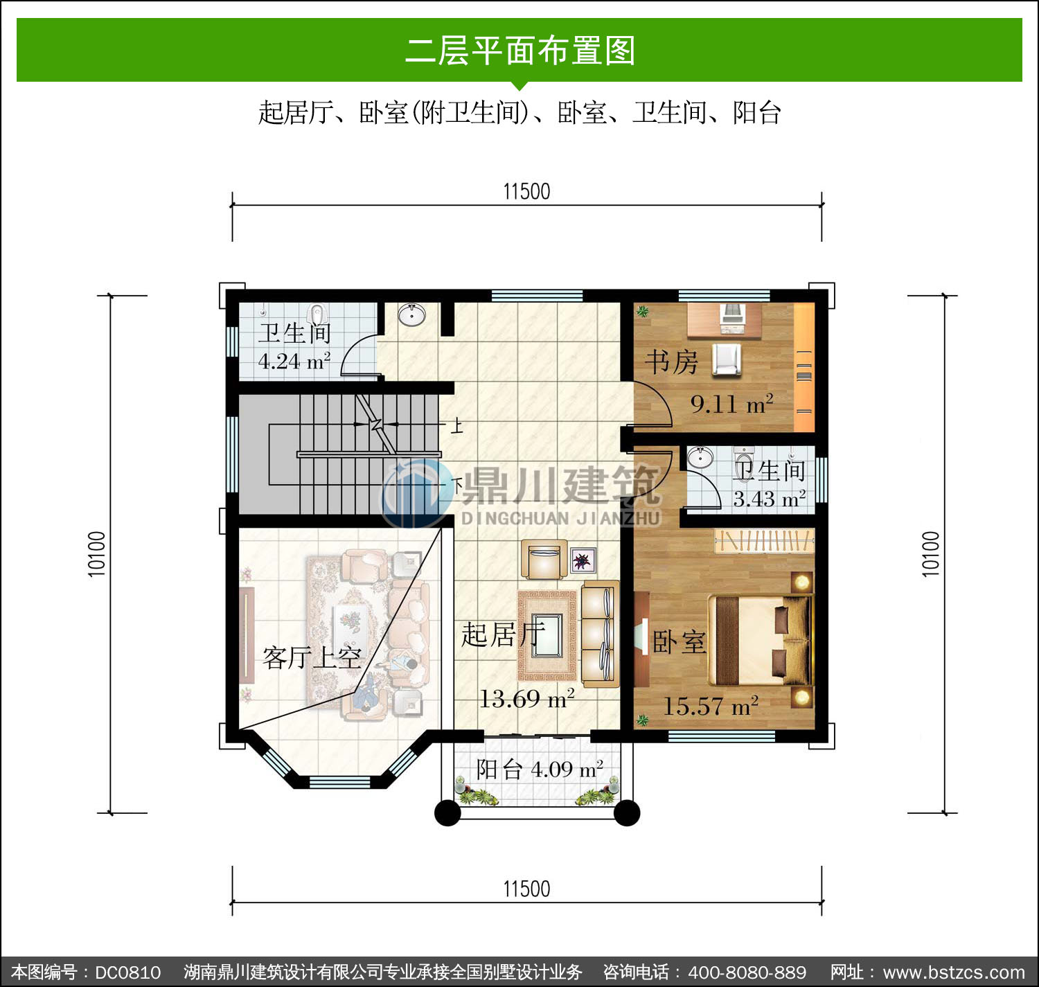 | 二 層: | 起居廳、臥室(附衛生間)、臥室、衛生間、陽臺 | |||