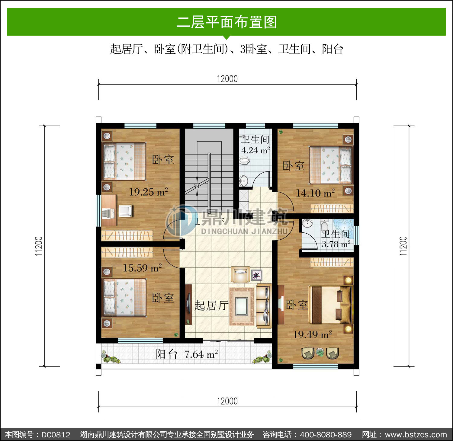 農村二層中式別墅圖紙施工圖及效果圖_自建房屋設計圖紙,鼎川建