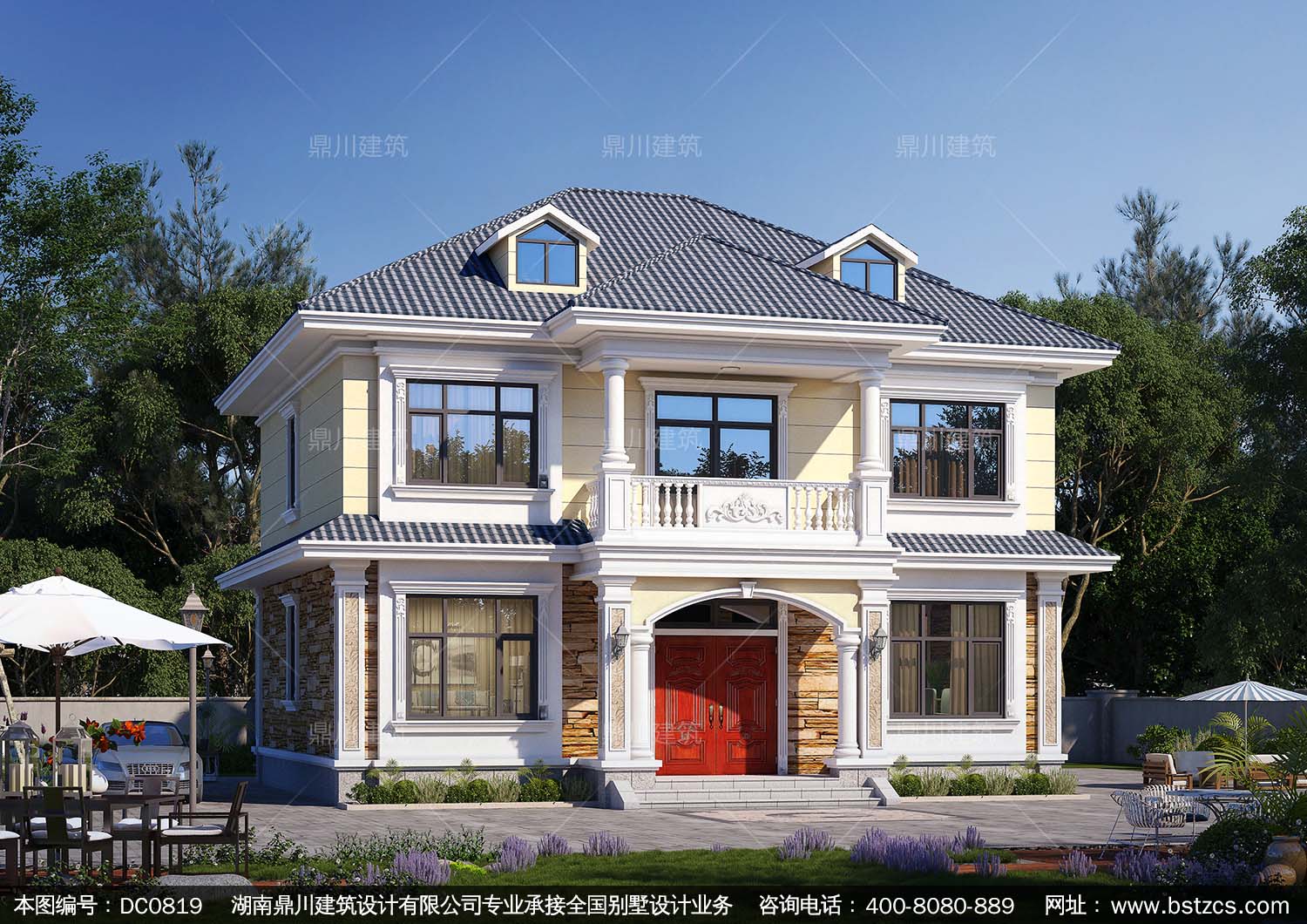 二層簡約帶陽臺小別墅效果圖及施工圖紙_農村自建房設計,鼎川建