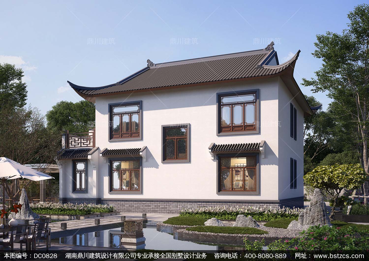 中式二層帶露臺自建房屋施工圖紙及效果圖_農村兩層房子設計,鼎川建筑