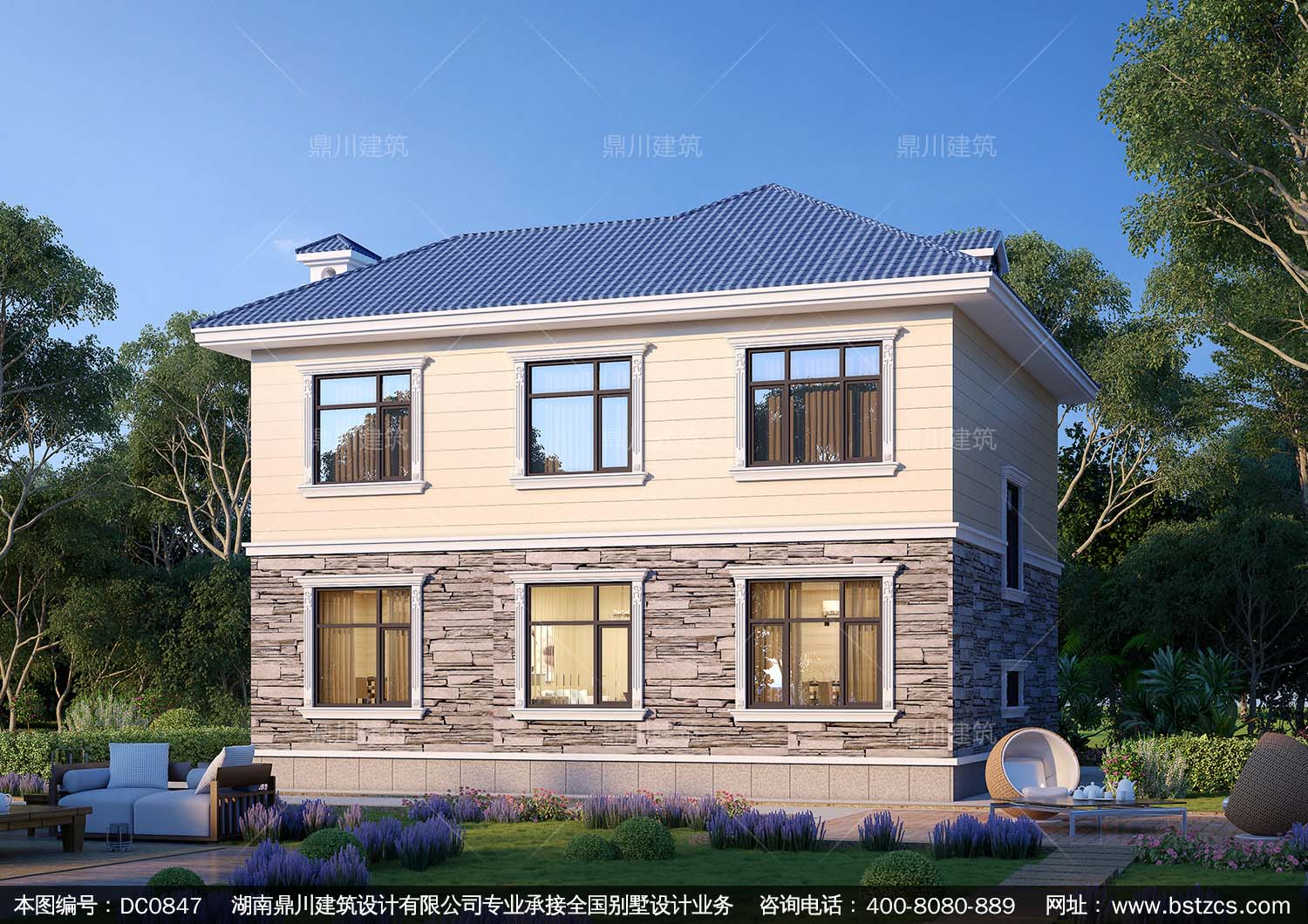 簡約二層帶露臺小別墅施工圖紙及效果圖_農(nóng)村自建房屋設(shè)計,鼎川建筑