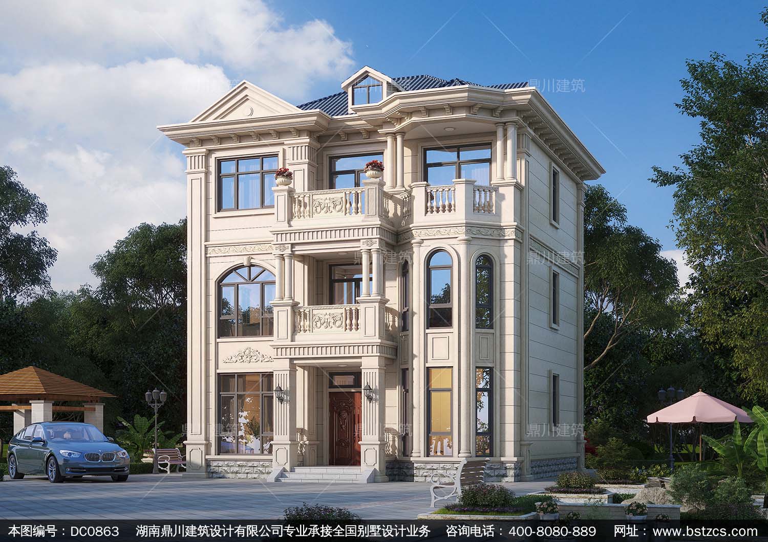 歐式三層帶陽(yáng)臺(tái)別墅施工圖紙及效果圖_新農(nóng)村自建房屋設(shè)計(jì),鼎川建筑