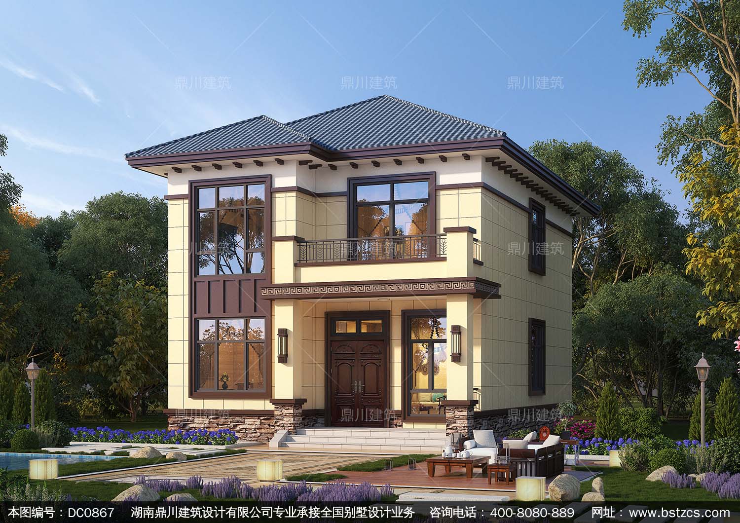 新中式二層帶露臺實用小別墅施工圖紙及效果圖_新農(nóng)村自建房設計,鼎川建筑