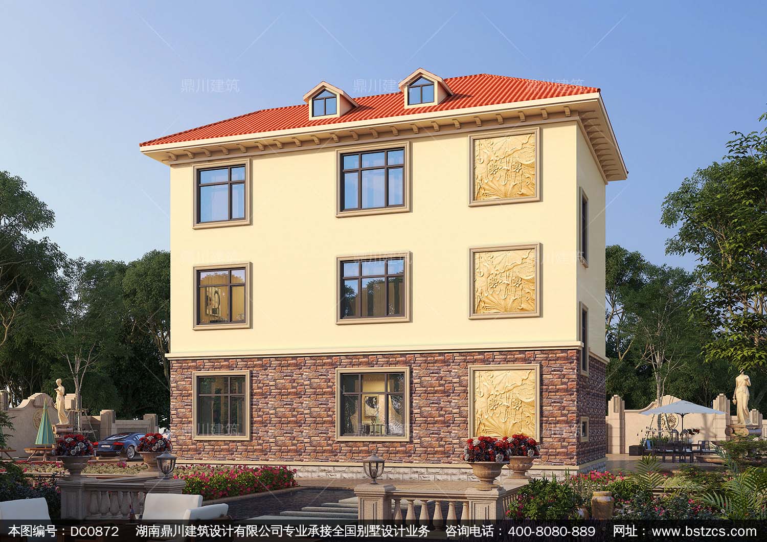 新農(nóng)村三層帶露臺(tái)別墅施工圖紙及外觀效果圖_鄉(xiāng)村自建房設(shè)計(jì),鼎川建筑