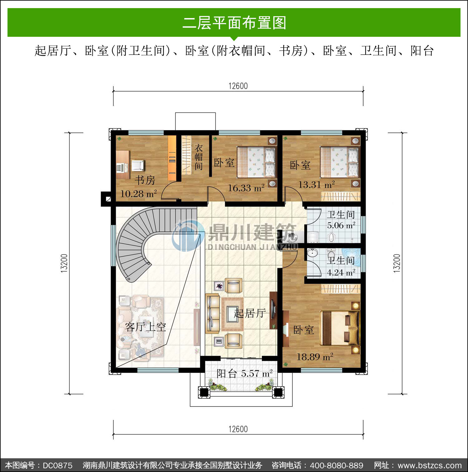 | 二 層: | 起居廳、臥室(附衛生間)、臥室(附衣帽間、書房)、臥室、衛生間、陽臺 | |||