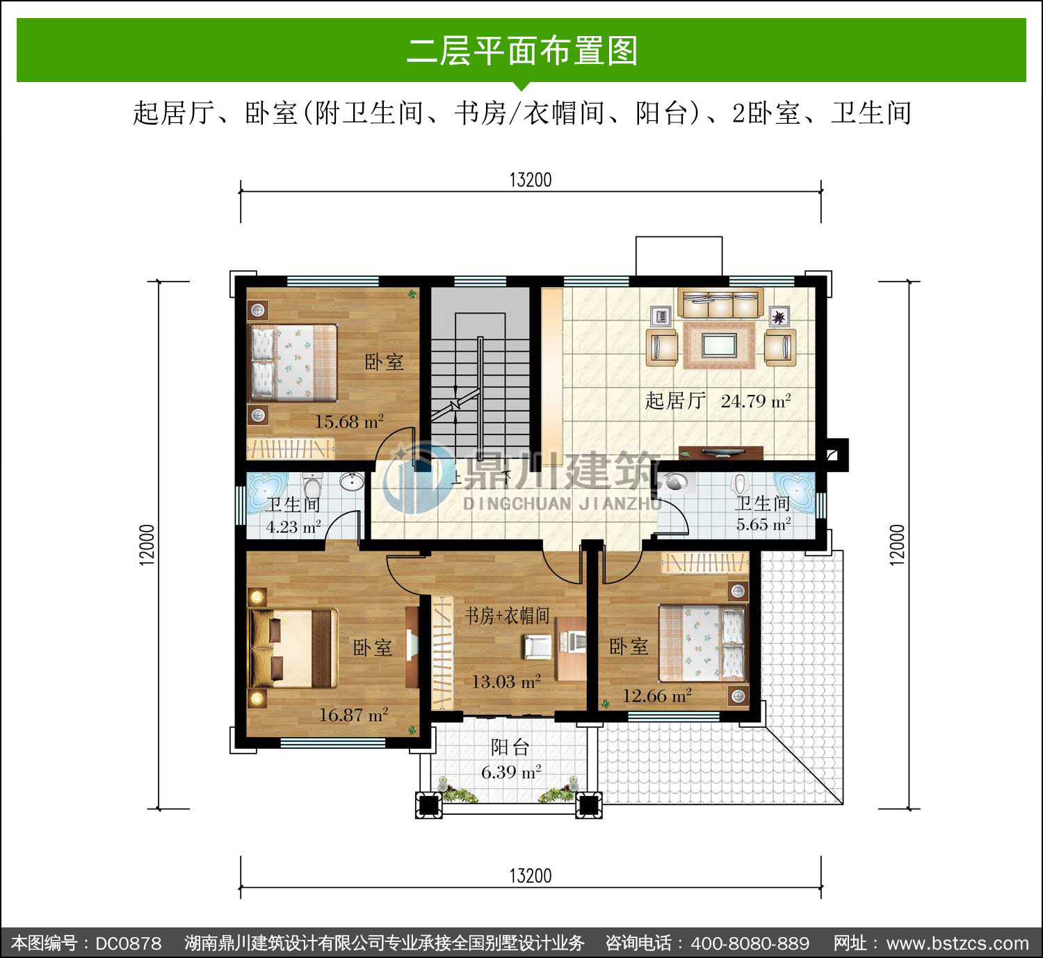 | 二 層: | 起居廳、臥室(附衛生間、書房/衣帽間、陽臺)、2臥室、衛生間 | |||